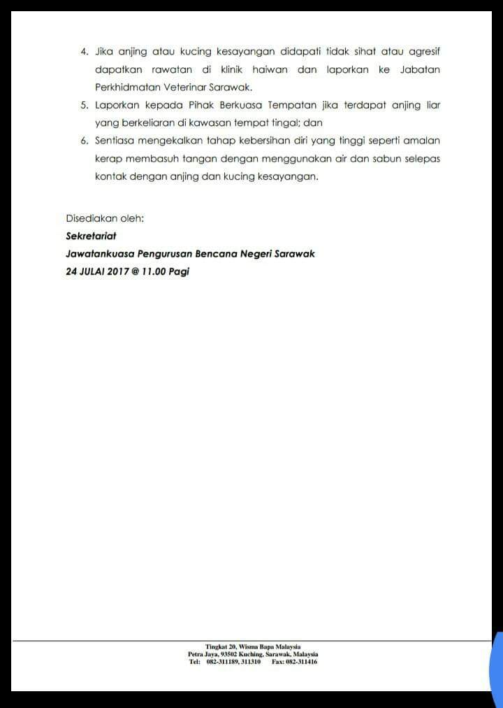 Kenyataan Akhbar KKM 1 Julai 2017 u2013 Kes Rabies di Negeri Sarawak
